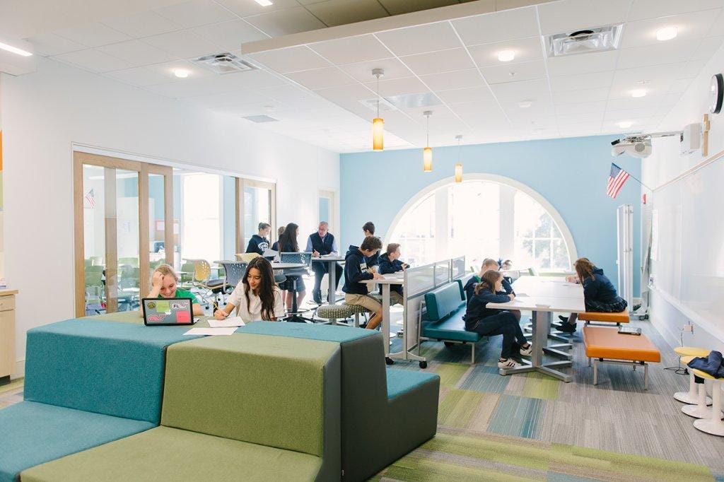 These dedicated areas let students explore hands-on learning, interdisciplinary inquiry, and real-world problem-solving. The ability to pursue meaningful work in a self-paced way builds both competence and ownership.Breakout areas and shared commons